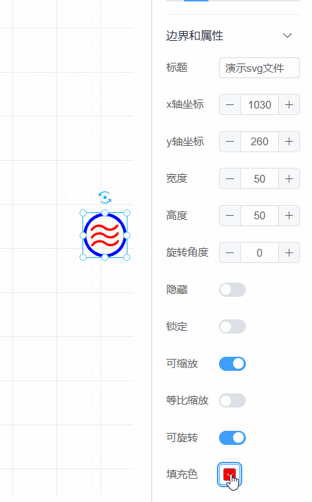 我们在前面导入自定义svg中讲到:直接导入svg文件的时候,创建出来的图形库所有节点的属性都是统一设置的