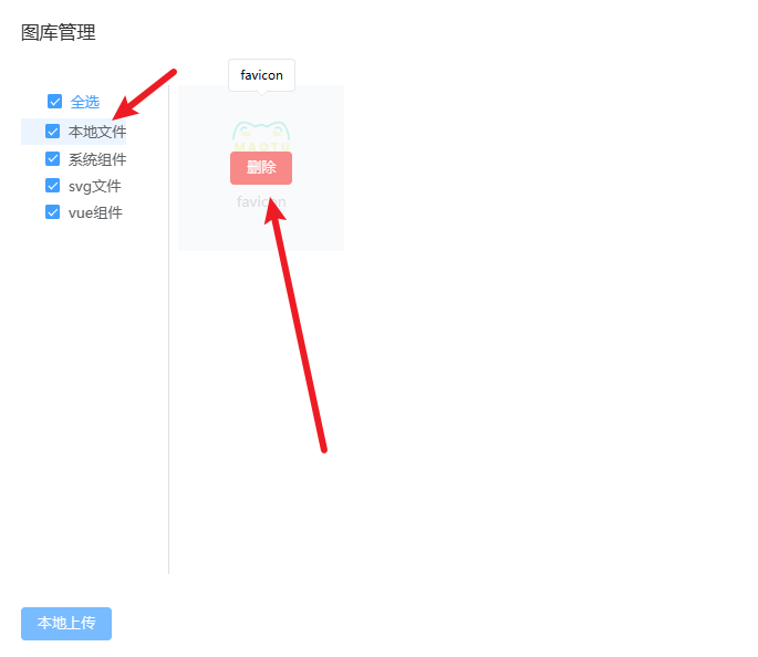 选中本地文件列表项,鼠标移动到要删除的图形上,点击删除即可